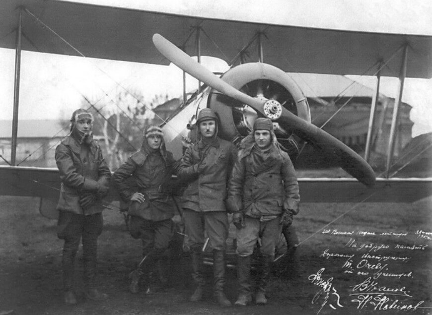 Курсант В. Чкалов (крайний справа) у самолета У-1